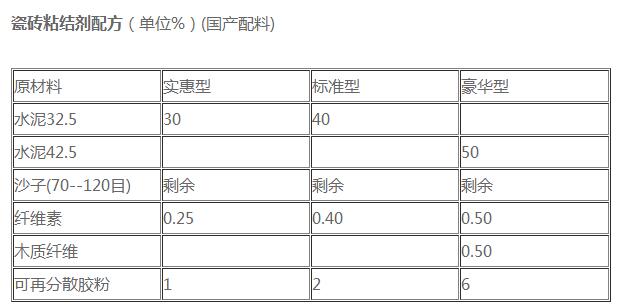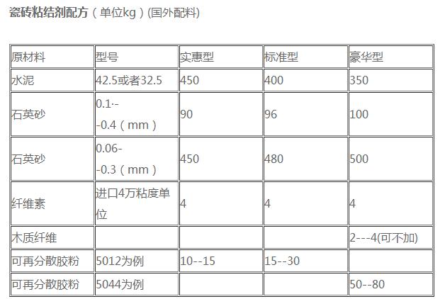 國外瓷磚粘合劑配方: