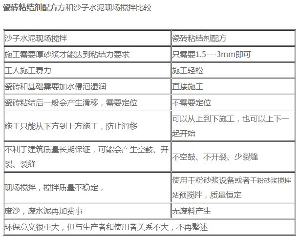 國產的和國外的瓷磚粘結劑配方介紹