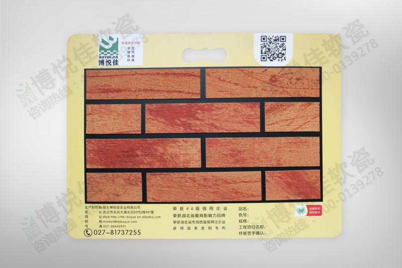 湖北博悅佳實業(yè)有限公司(www.vipdijia.com)專業(yè)生產(chǎn)軟瓷、劈開磚、外墻磚、仿古磚、柔性飾面磚等特色產(chǎn)品,是集生產(chǎn)、施工和修復(fù)為一體的專業(yè)化公司,在高層建筑,別墅,豪宅,仿古建筑等領(lǐng)域倍受好評。產(chǎn)品低碳、節(jié)能、環(huán)保,具有耐高溫、耐腐蝕、抗凍強、抗剝落等特點,遠(yuǎn)銷海外。軟瓷產(chǎn)品及施工歡迎咨詢博悅佳:18071719278 、400-013-9278。