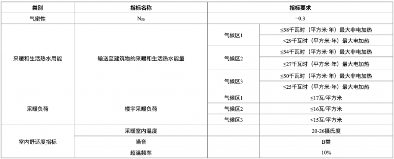 供暖能耗:供暖能耗≤15千瓦時(shí)/(平方米·年)或熱負(fù)荷≤10瓦/平方米;當(dāng)采用空調(diào)時(shí),對(duì)供冷能耗的要求與供暖能耗一致;