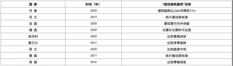 部分歐洲國家“超低能耗建筑”發(fā)展目標(biāo)