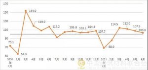 2021年6月建筑材料工業(yè)景氣指數(shù)(MPI)運行情況